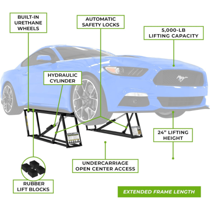 With a 7,000 lb. lifting capacity, it offers clear undercar access without the need for a permanent installation. Whether you’re performing oil changes, transmission work, or general vehicle maintenance, the MaxJax M7K provides a convenient, space-saving solution.