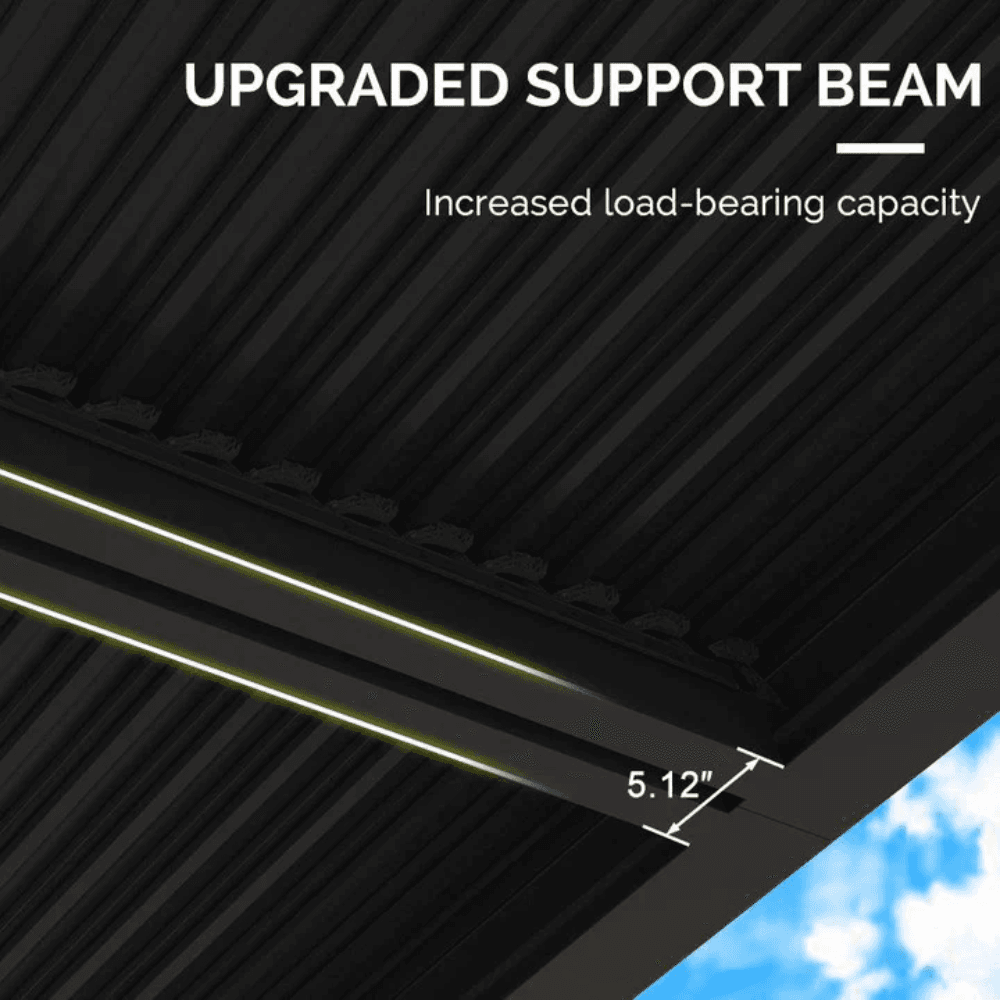 | Apollo Louvered Pergola | $2799 – $2899 | 10’x13′ | 92.6” – 93.2” | Aluminum | √ | √ | Grey / Bronze | × | 1 Year |