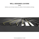 - In high winds, snow, or extreme weather, open the louvers and remove shade screen accessories to prevent damage.