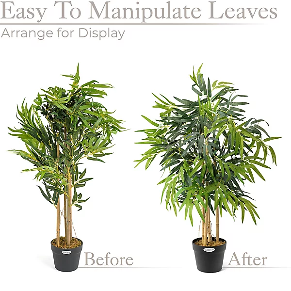 • Stems are made from natural bamboo and lush green leaves are made from easy-clean polyester to give the artificial bamboo plants a beautiful, lifelike appearance