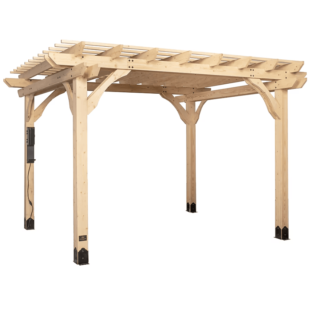 Enhance your outdoor space with the Backyard Discovery 12′ x 10′ Fairhaven Pergola, designed for both relaxation and entertainment. Crafted from premium Nordic Spruce lumber, this naturally resilient pergola resists decay, cracking, splintering, and warping, ensuring long-lasting durability. With a timeless multi-level roof trellis, spacious 12′ x 10′ footprint, and an exclusive built-in PowerPort™, the Fairhaven Pergola is perfect for creating a stylish and inviting outdoor retreat.
