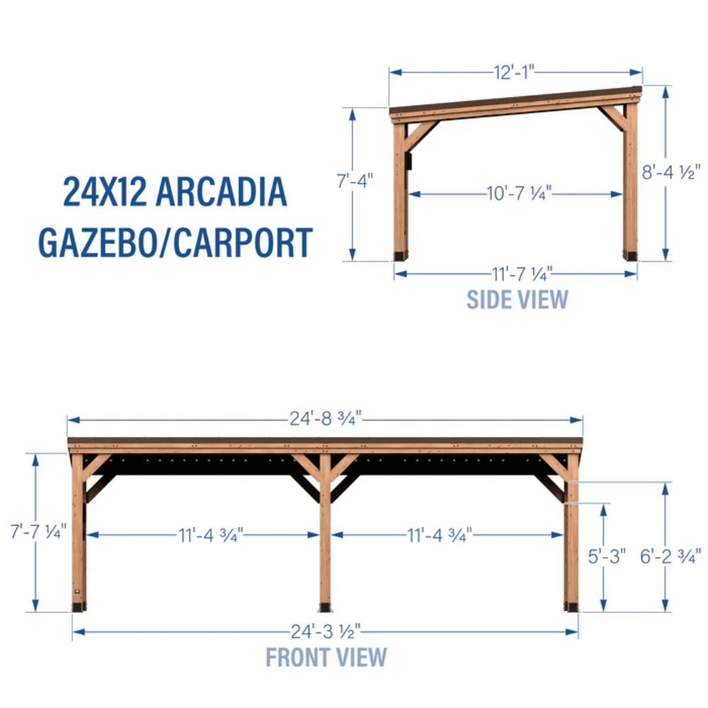 Transform your outdoor living space with the Backyard Discovery 24′ x 12′ Arcadia Gazebo, designed for exceptional durability, elegance, and functionality. Crafted from 100% premium cedar wood and featuring a heavy-duty steel roof, this gazebo offers long-lasting protection and style. Whether used as a vehicle shelter, outdoor entertainment area, or grilling space, the Arcadia Gazebo is built to withstand the elements while enhancing the beauty of your backyard.