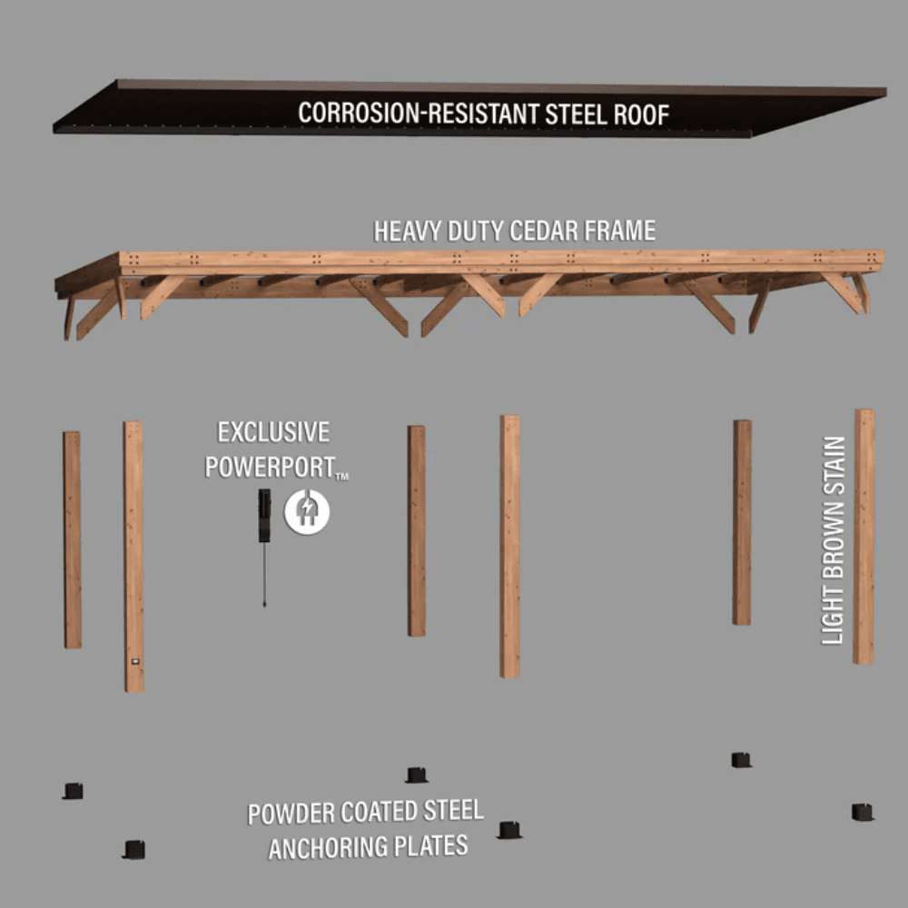 - Material: 100% Cedar Wood & Powder-Coated Steel