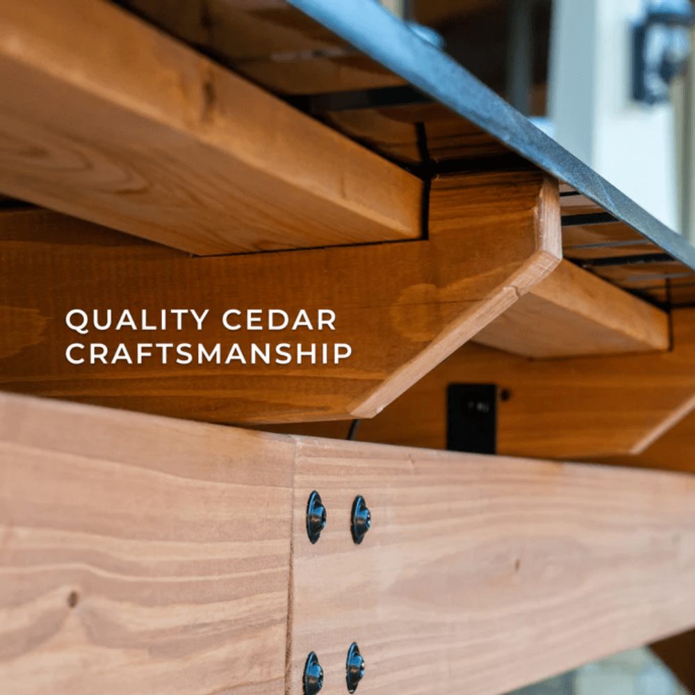 - Material: 100% Cedar Wood & Powder-Coated Steel