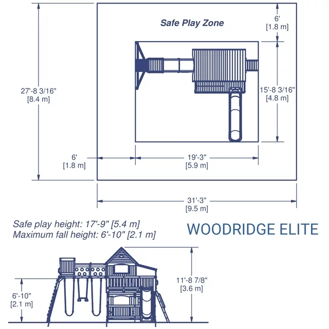 One of our best sellers, the Woodridge Elite is decked out with a sprawling top level and expansive lower fort. The whole block has room to play between the raised clubhouse, covered side porch with sandbox area, open sun porch, elevated tunnel, sizeable crow’s nest, and roomy lower fort. The stepladder, rock wall ladder and 10ft. wave slide provide plenty of fun entry and exit routes as the crowd darts from level to level. After so much running and chasing, the built-in bench, two belt-swings and trapeze provide a more relaxing alternative for those in need of a break. Made to weather the biggest broods, the Woodridge Elite will supply any and all families with years of fun. The customer is responsible for the cost of the return shipping fee when you return an oversized item.