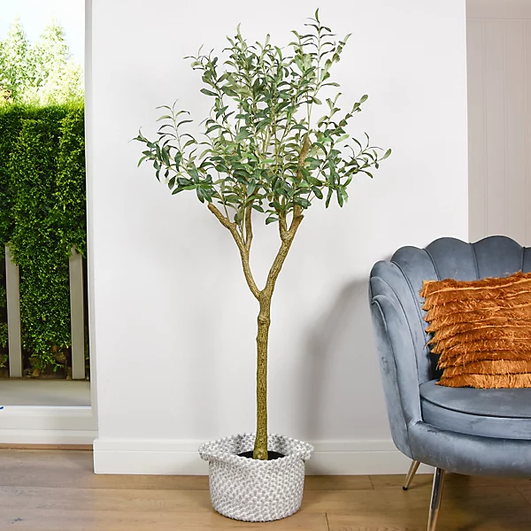 An elegant and resilient olive tree, cultivated in a charming pot, exuding Mediterranean charm and timeless beauty.