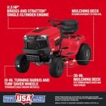 The CRAFTSMAN® T100 is built for homeowners seeking reliable performance, durability, and ease of use. Powered by a robust 11.5 HP Briggs & Stratton® single-cylinder engine, this front-engine riding mower is designed to handle tough jobs while offering a comfortable, easy-to-operate experience.