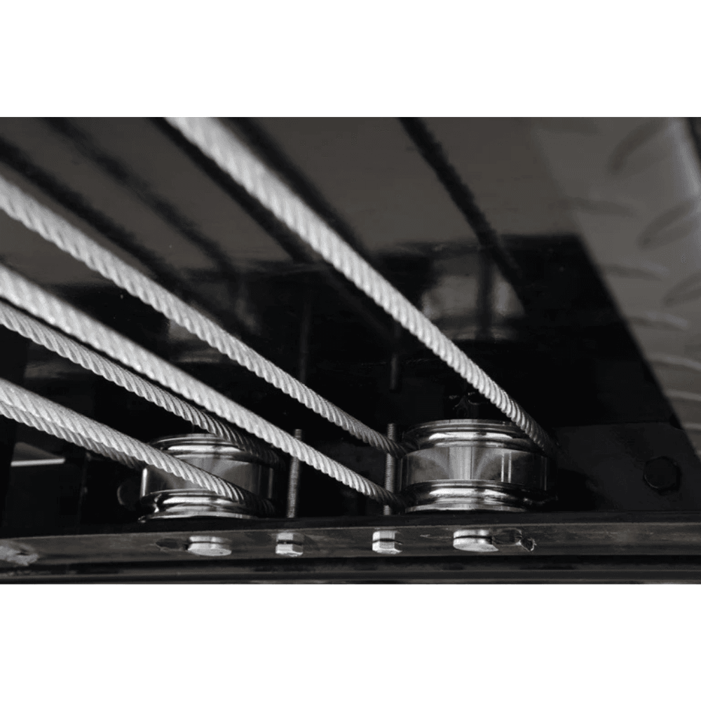- Secondary cable tension locks on all four corners prevent cable slack.