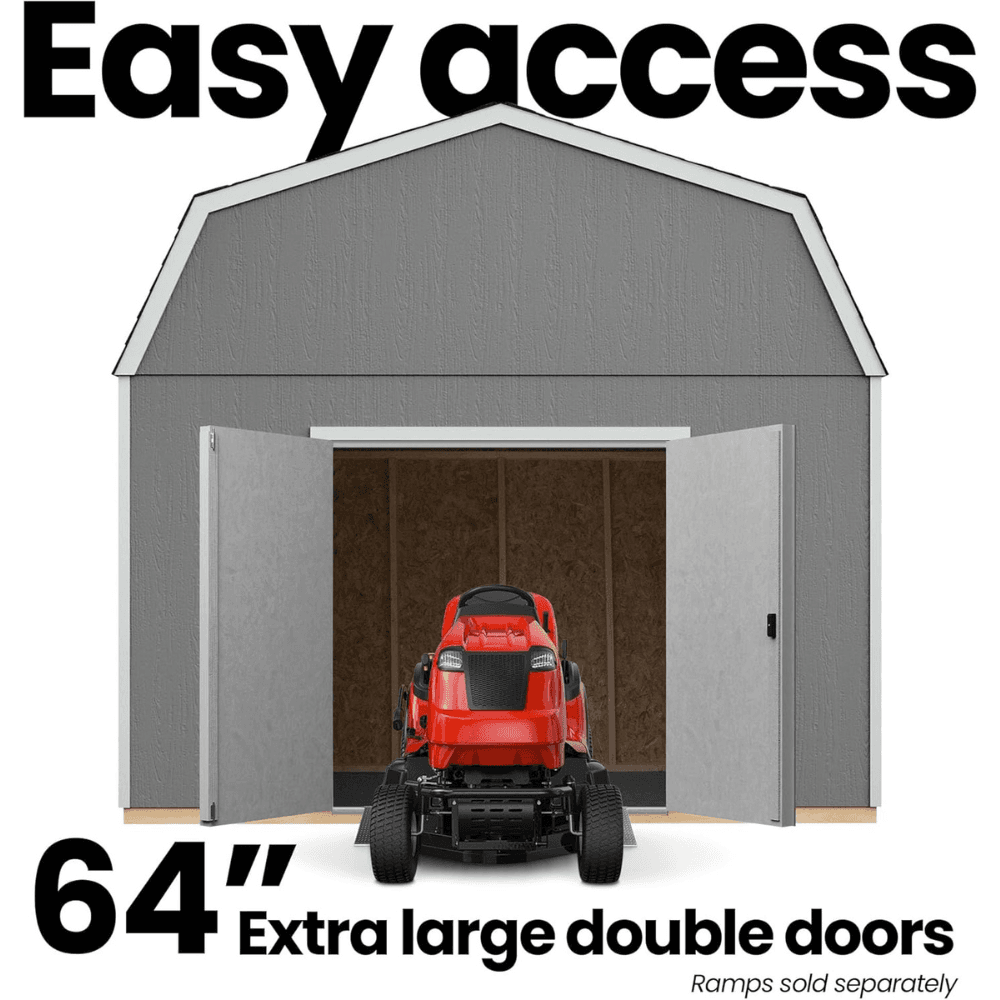 • 64″ wide double doors provide easy access for large equipment, tools, and storage bins.