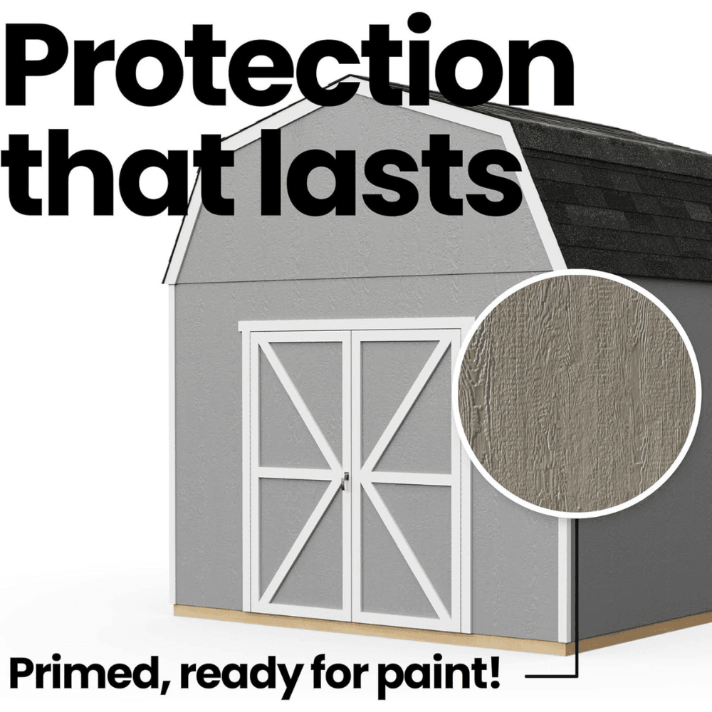 • Factory-primed siding is ready to paint, allowing you to customize the shed to match your home.