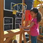 • Activity center with bag toss and a basketball hoop with chalk backboard