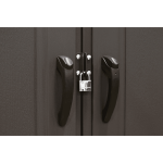 Crafted with high-density polyethylene (HDPE) plastic and steel-reinforced walls, this shed is designed to withstand the elements while maintaining a clean, stylish appearance.