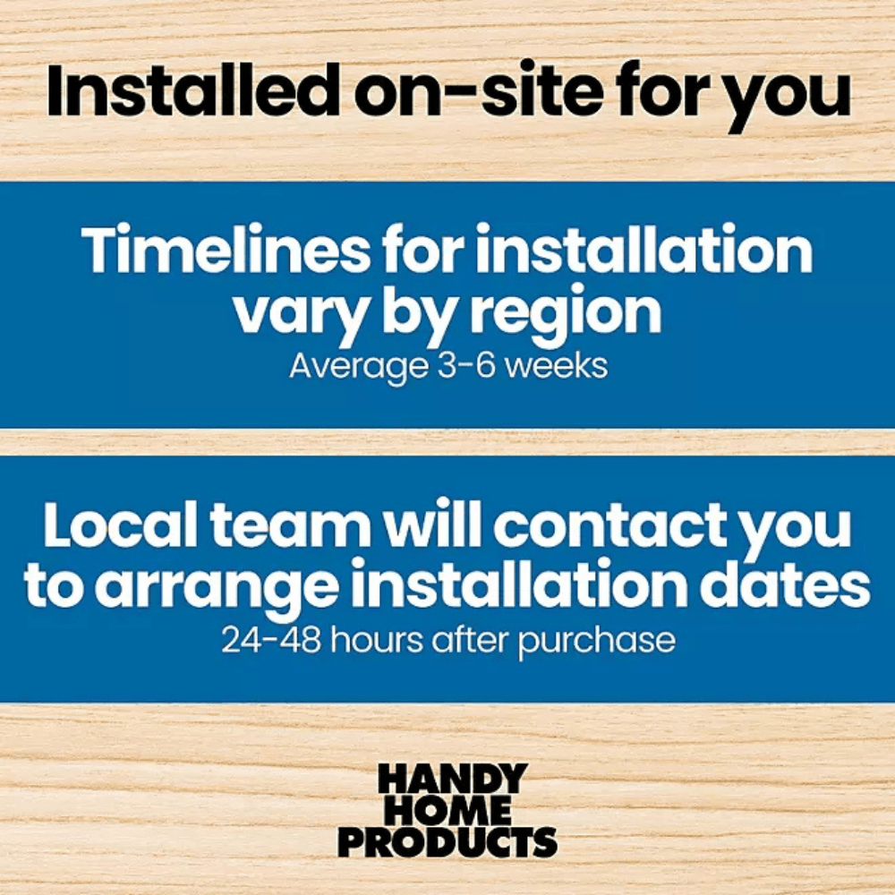 • Handy Home Products will contact you a few days after purchase to schedule installation.