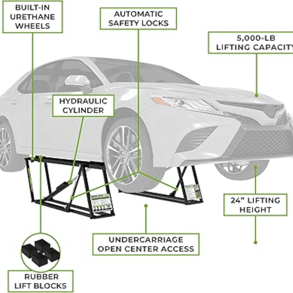 - 5,000 lb. Lifting Capacity – Ideal for cars, light trucks, and SUVs.