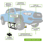 - Lifts full-size trucks, SUVs, and extended-wheelbase vehicles with ease.