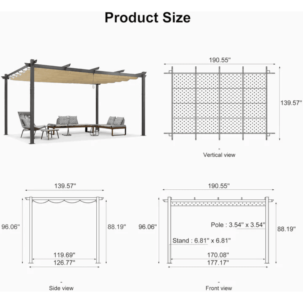 Upgrade your outdoor living with the PURPLE LEAF Retractable Pergola – the perfect blend of style, durability, and customizable comfort.