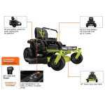 This Ryobi Zero-Turn Mower is built for user convenience and comfort, making mowing easier and more enjoyable.