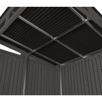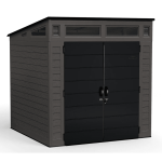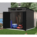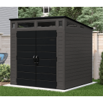 The Suncast 7′ x 7′ Modernist® Storage Shed combines modern aesthetics with superior durability, providing a spacious, secure, and stylish solution for storing garden tools, outdoor equipment, bicycles, and more. Built with twin-wall resin plastic panels reinforced by a steel frame, this shed is designed to withstand harsh weather conditions while remaining virtually maintenance-free. Its sleek peppercorn and black color scheme, integrated transom windows, and pad-lockable double doors make it a perfect blend of form and function for any outdoor space.