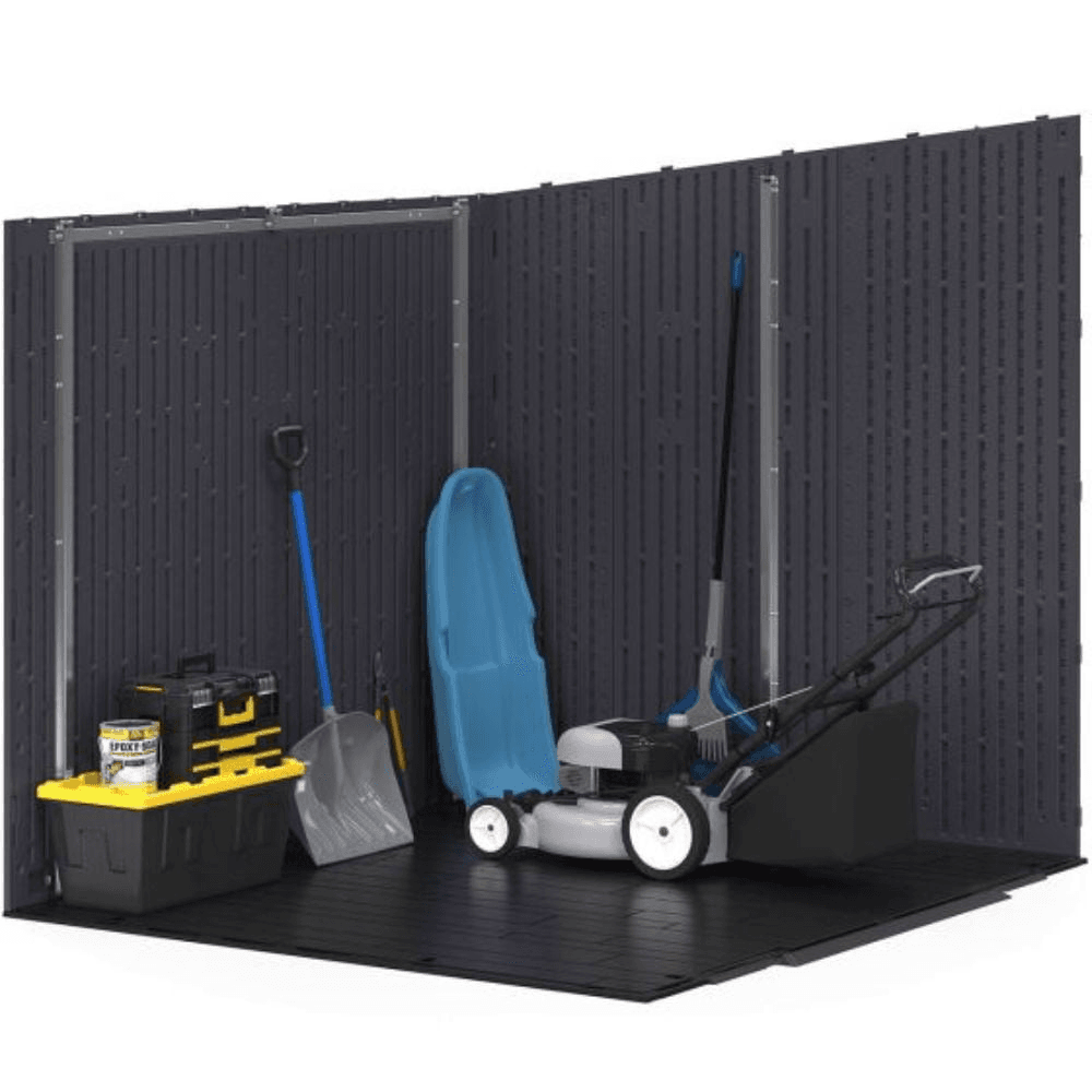 With 54 sq. ft. of interior storage space, this modern storage shed offers ample room to store everything from gardening tools and patio furniture to bikes and outdoor gear.