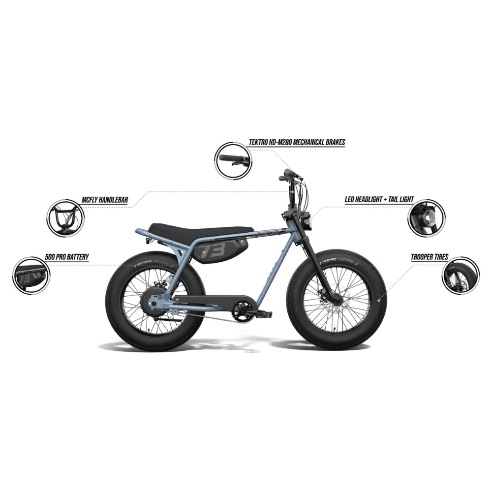 This e-bike is all about making an impression. Its fresh design and bold color options ensure that whether you’re cruising through city streets or riding to a block party, you stand out from the crowd. The striking headlight option in Panthro Blue sets the mood for night rides, while alternative finishes—Obsidian, Metallic Aluminum, Prickly Pink, or Sriracha—offer a sleek, minimalist aesthetic for those who prefer a different look.