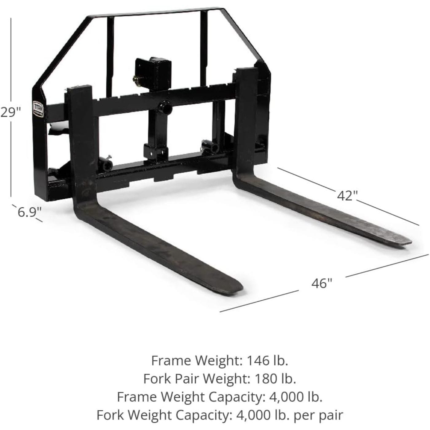 Rated at 4,000 LB, the all-in-one Standard Series Pallet Fork Frame boasts a higher weight capacity than the Economy Series frame and includes a see-through headache rack for added durability and safety. This frame features a slotted carriage bar and is available with or without Class II pallet fork blades, making it ideal for moving pallets, logs, and other debris. Additionally, it has a 2″ receiver hitch to transform your skid steer or tractor into a towing machine.