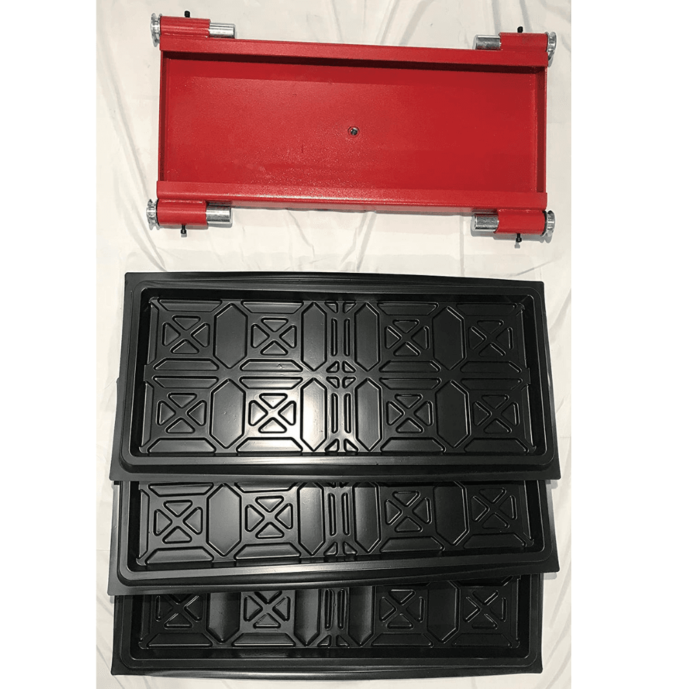 - Jack tray supports bottle jacks or floor jacks for additional lifting options.
