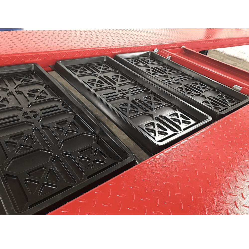 - Runway drip trays prevent fluid from leaking onto the lower vehicle.