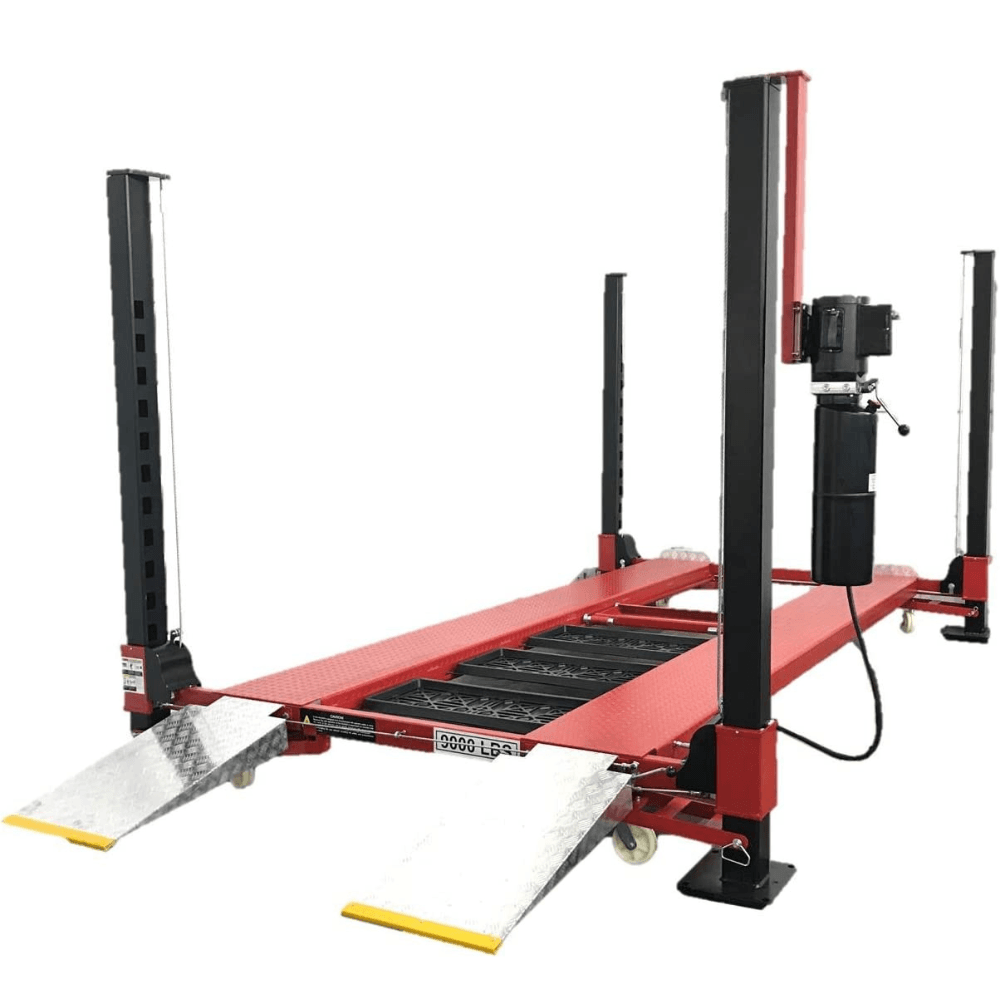 This extra-long, extra-tall lift is built for stability, safety, and ease of use, making it one of the best portable four-post storage lifts on the market.